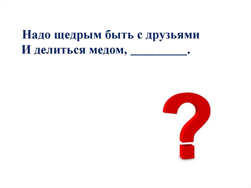 Надо щедрым быть с друзьямиИ делиться медом, _________.