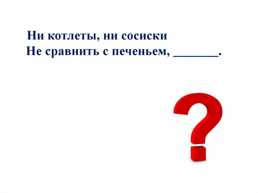 Ни котлеты, ни сосискиНе сравнить с печеньем, _______.