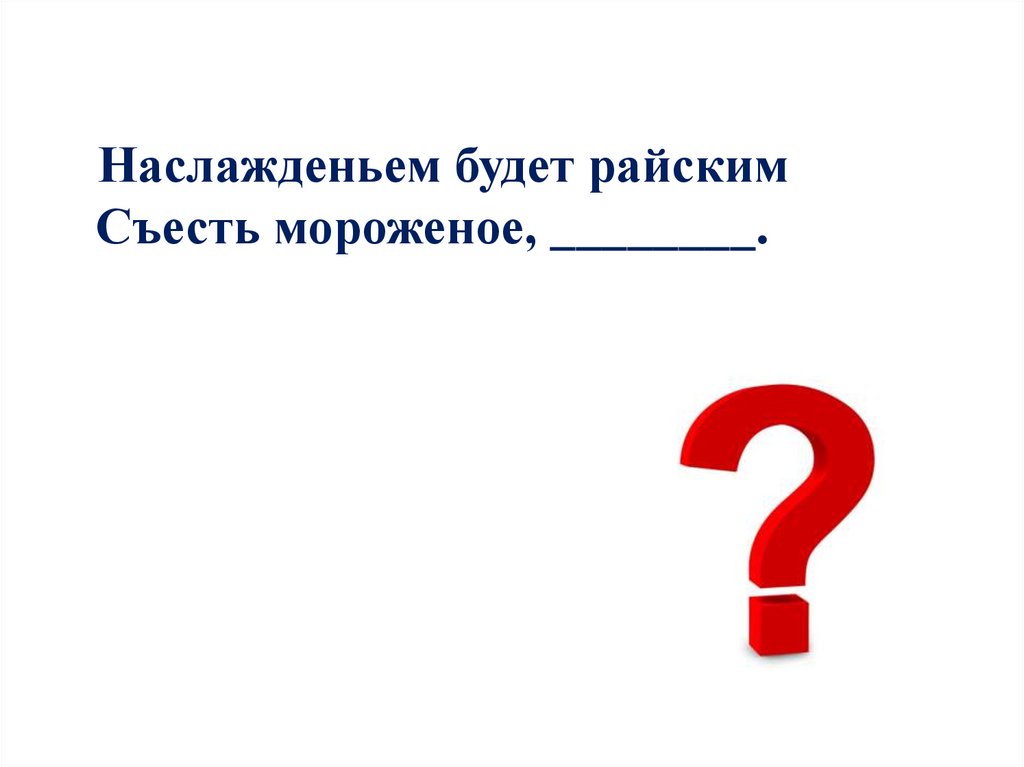 Наслажденьем будет райскимСъесть мороженое, ________.
