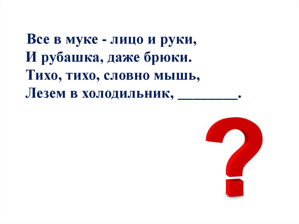 Все в муке - лицо и руки,И рубашка, даже брюки.