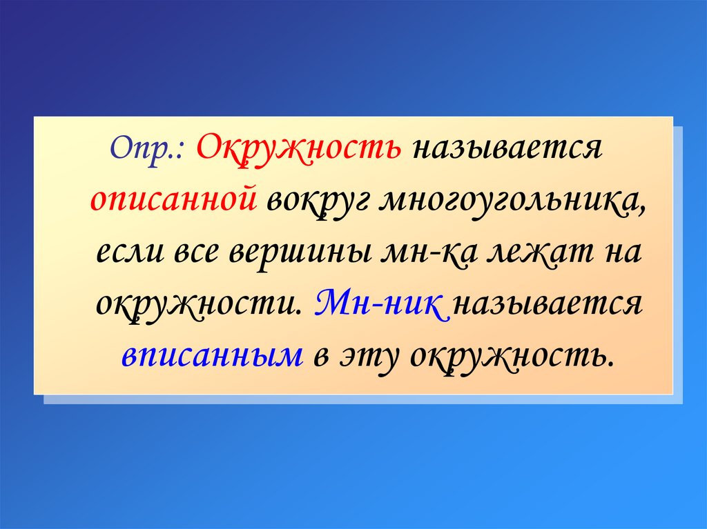 Опр.: Окружность называетсяописанной вокруг многоугольника,