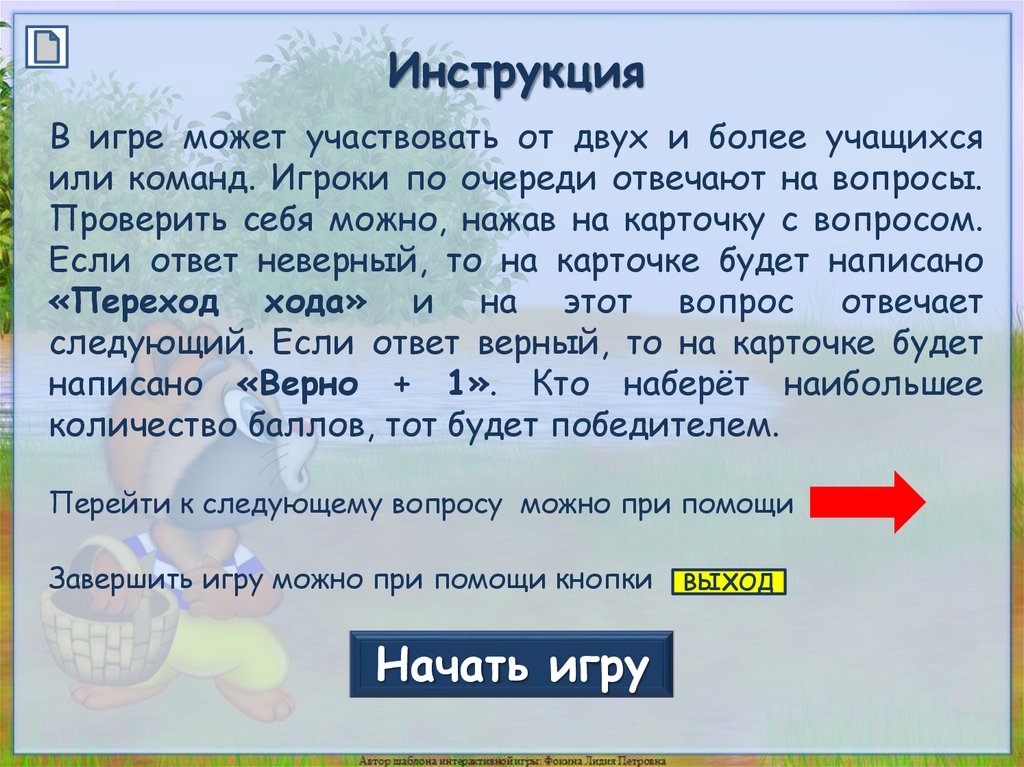 Автор шаблона интерактивной игры: Фокина Лидия Петровна,