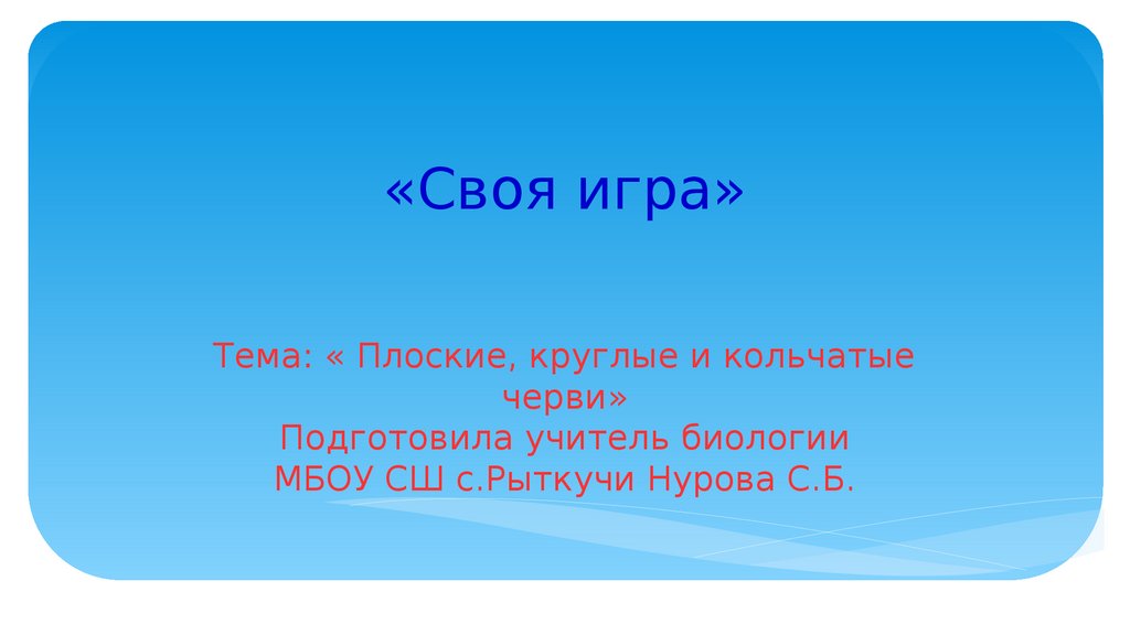 «Своя игра»Тема: « Плоские, круглые и кольчатые