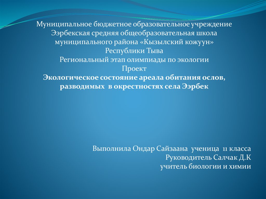 Муниципальное бюджетное образовательное учреждениеЭэрбекская средняя общеобразовательная школа