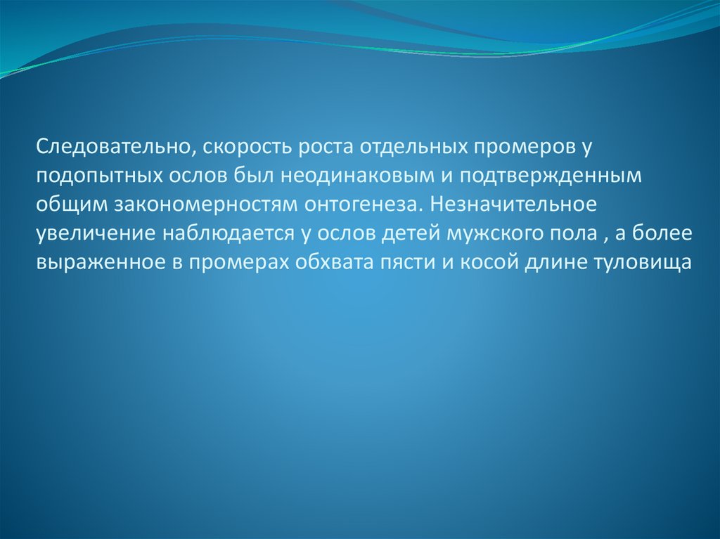 Следовательно, скорость роста отдельных промеров уподопытных ослов был неодинаковым и подтвержденным