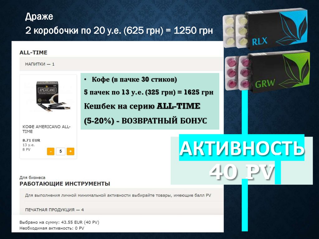 Драже2 коробочки по 20 у.е. (625 грн) = 1250 грн