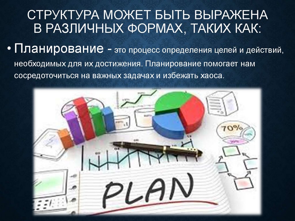 • Структура - это порядок, организованность, взаимосвязь различныхэлементов. Она помогает нам эффективно использовать свое время