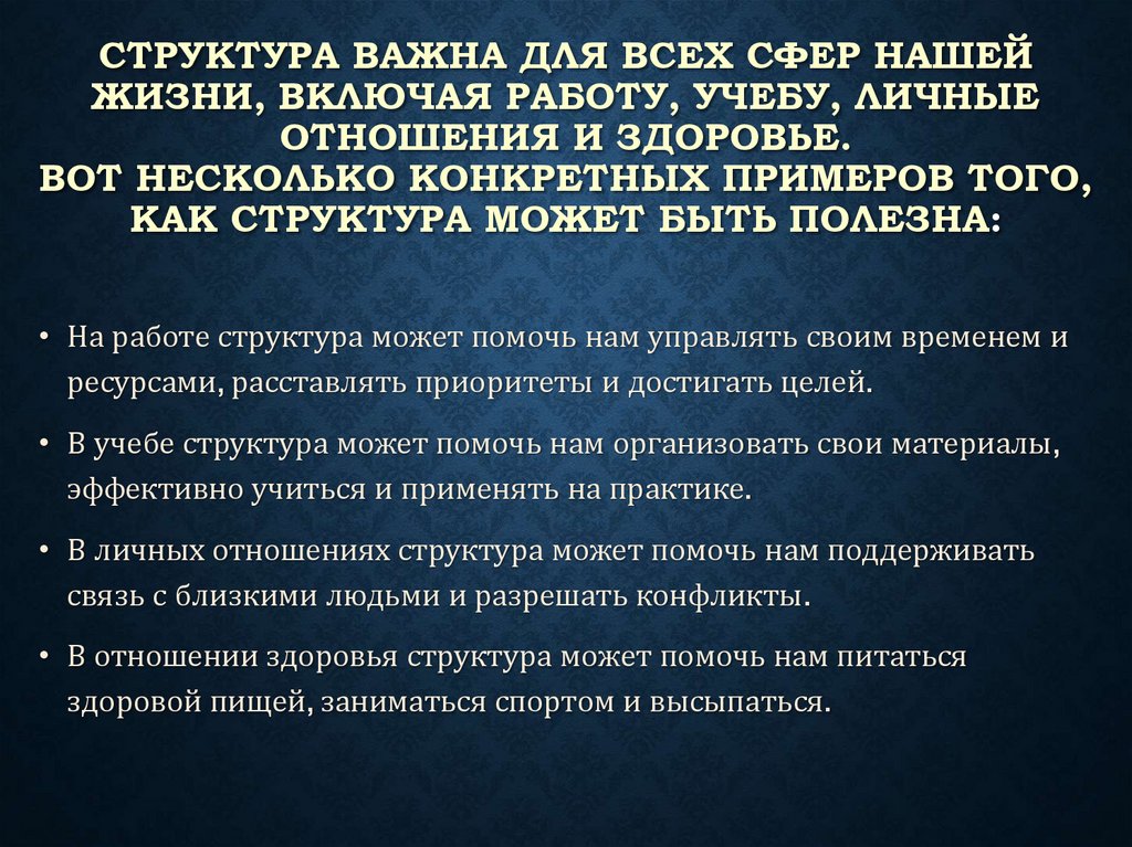 • В личных отношениях структура может помочь нам поддерживать