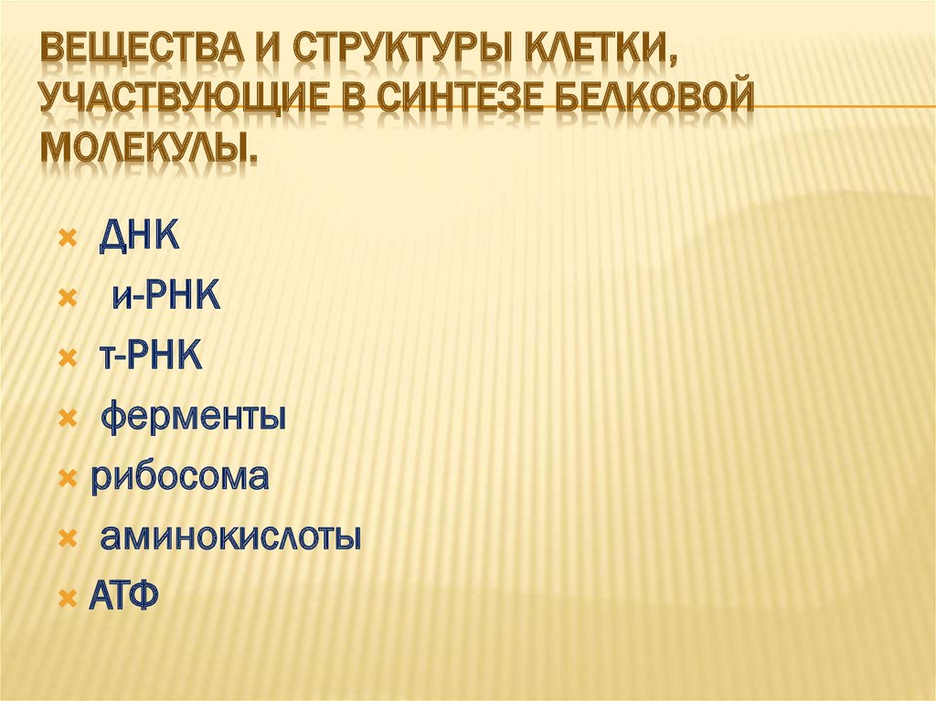 ВЕЩЕСТВА И СТРУКТУРЫ КЛЕТКИ,УЧАСТВУЮЩИЕ В СИНТЕЗЕ БЕЛКОВОЙ