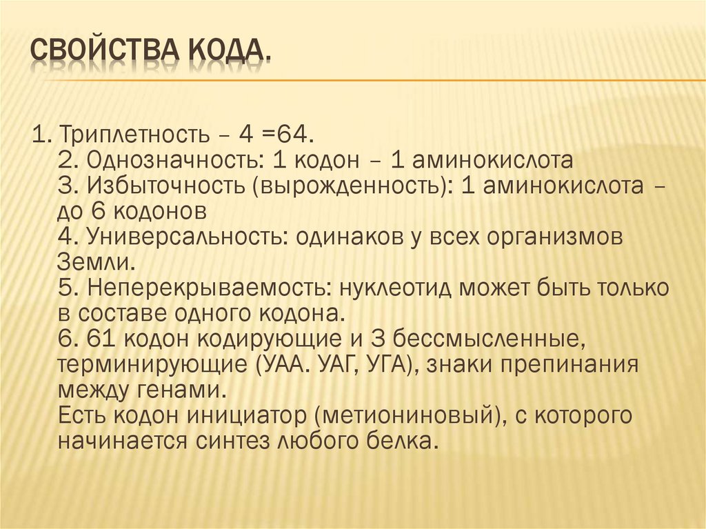 СВОЙСТВА КОДА.1. Триплетность – 4 =64.