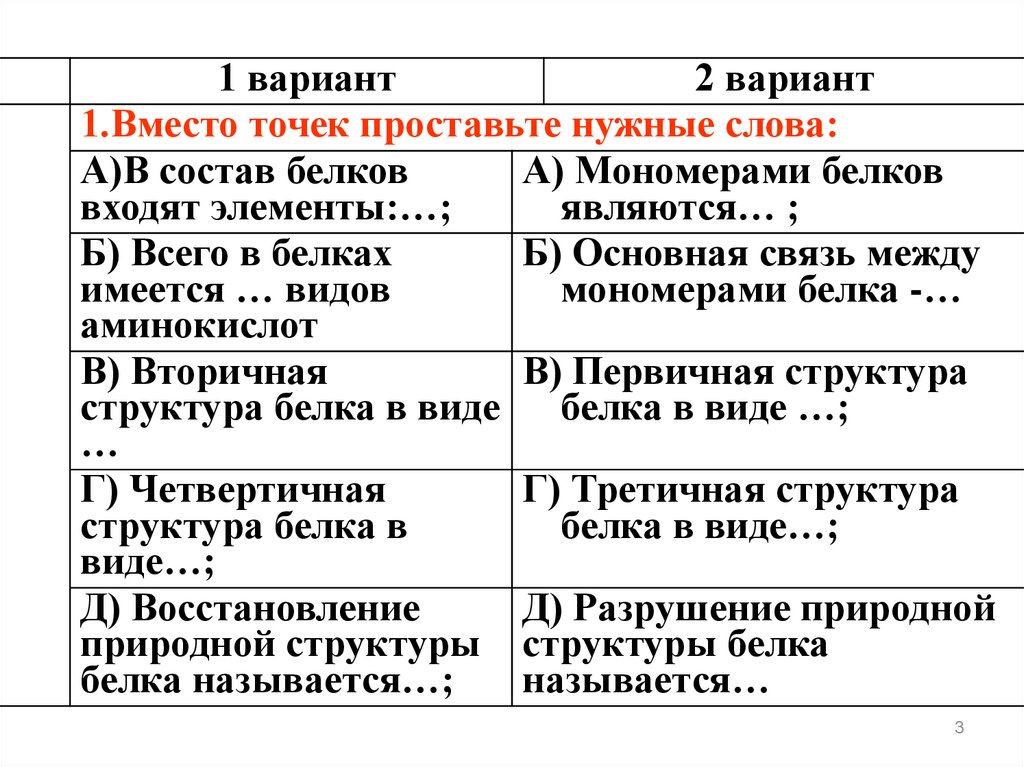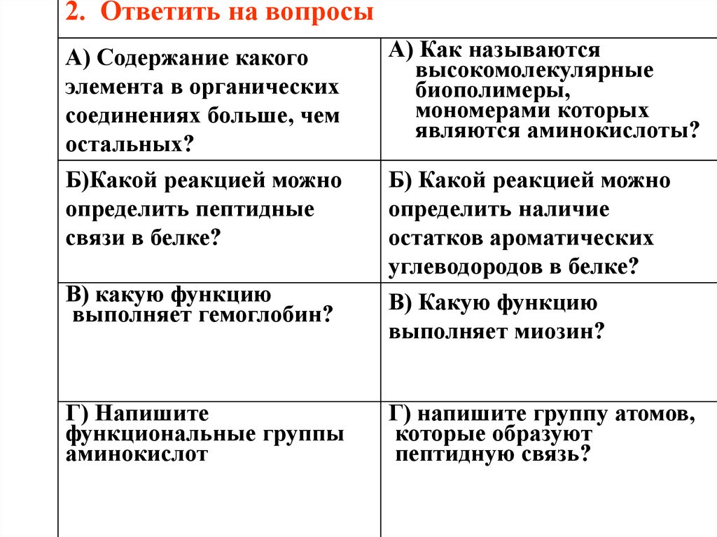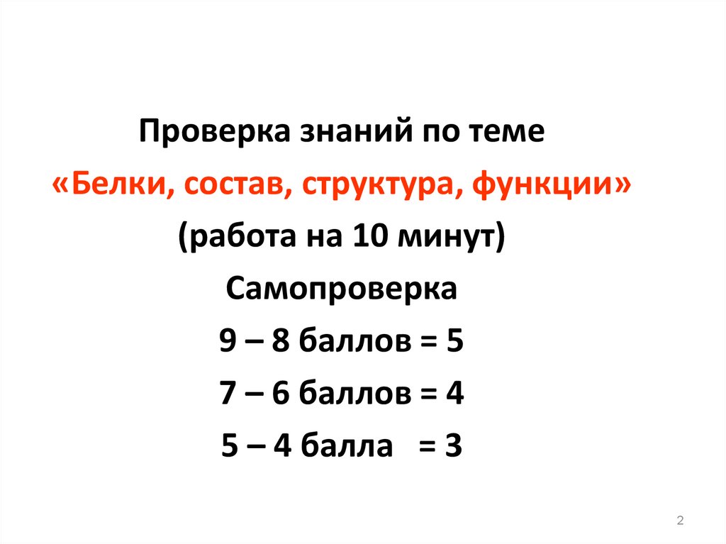 Проверка знаний по теме«Белки, состав, структура, функции»