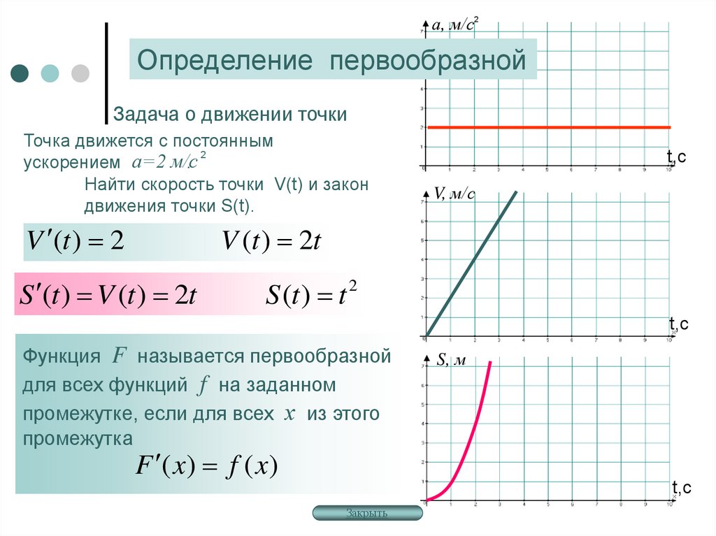 а, м/с2Определение первообразной