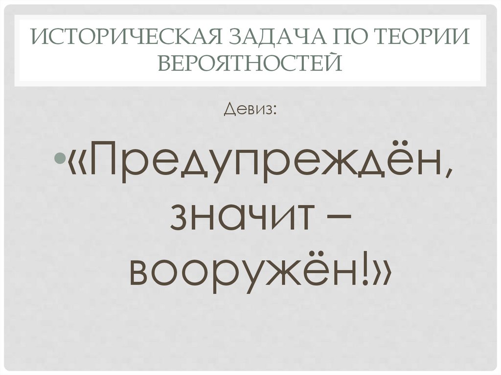 ИСТОРИЧЕСКАЯ ЗАДАЧА ПО ТЕОРИИВЕРОЯТНОСТЕЙ