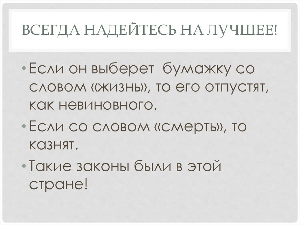 ВСЕГДА НАДЕЙТЕСЬ НА ЛУЧШЕЕ!• Если он выберет бумажку со