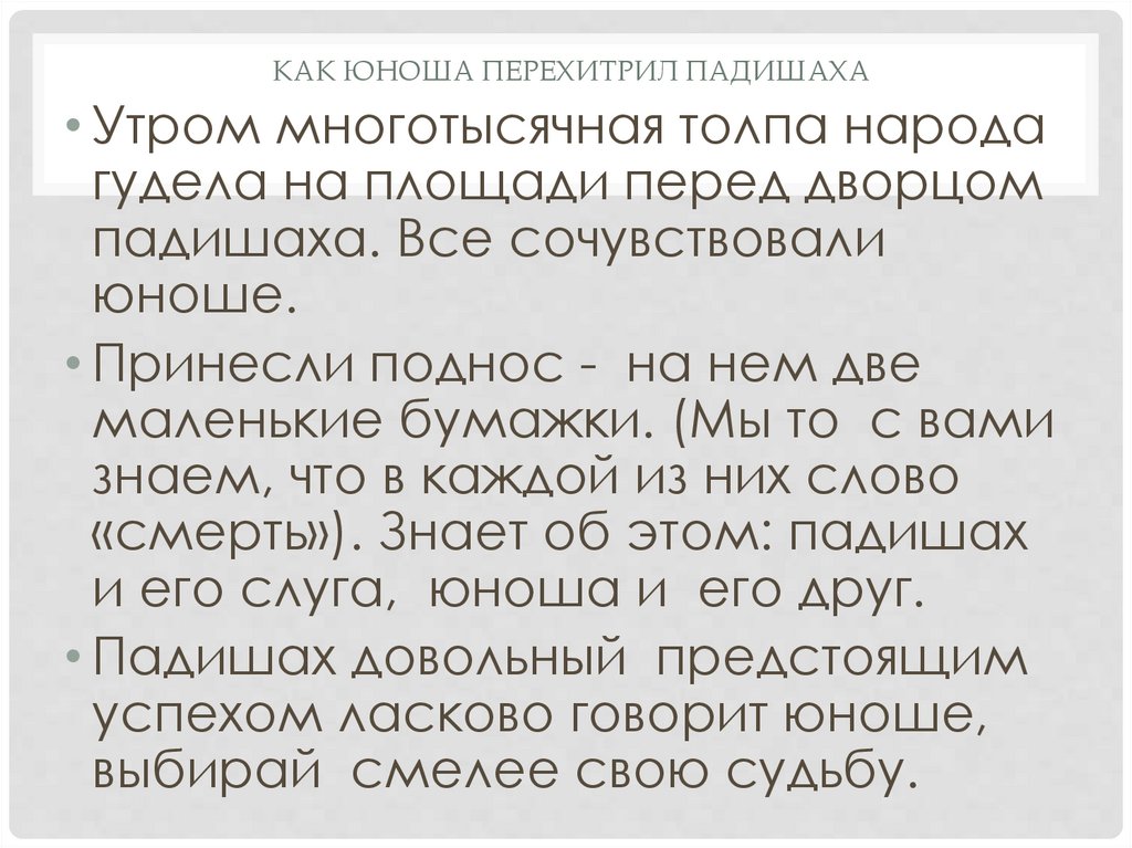 КАК ЮНОША ПЕРЕХИТРИЛ ПАДИШАХА• Утром многотысячная толпа народа