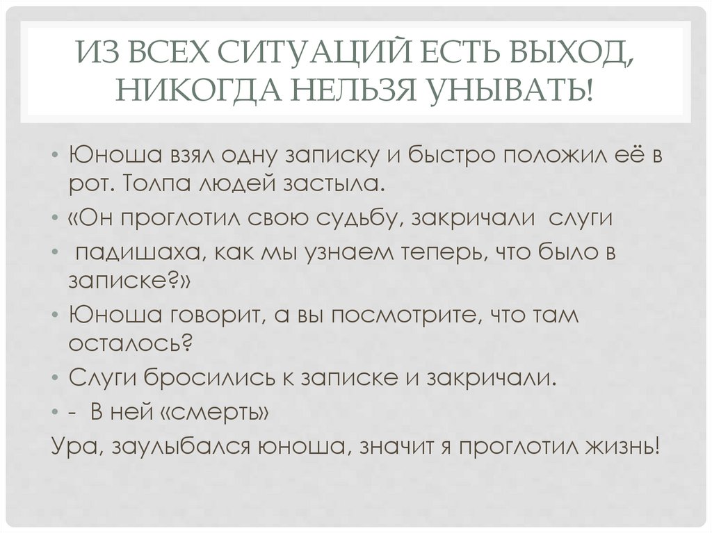 ИЗ ВСЕХ СИТУАЦИЙ ЕСТЬ ВЫХОД,НИКОГДА НЕЛЬЗЯ УНЫВАТЬ!
