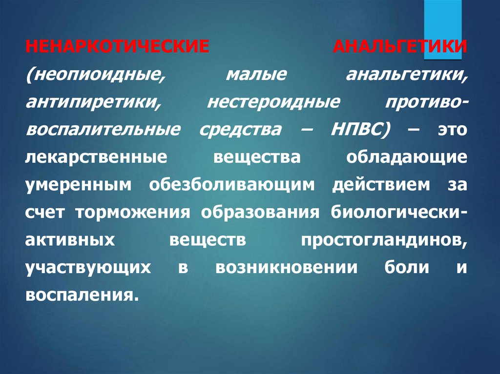 Аналитики. Патогенетические основы медикаментозной терапии боли