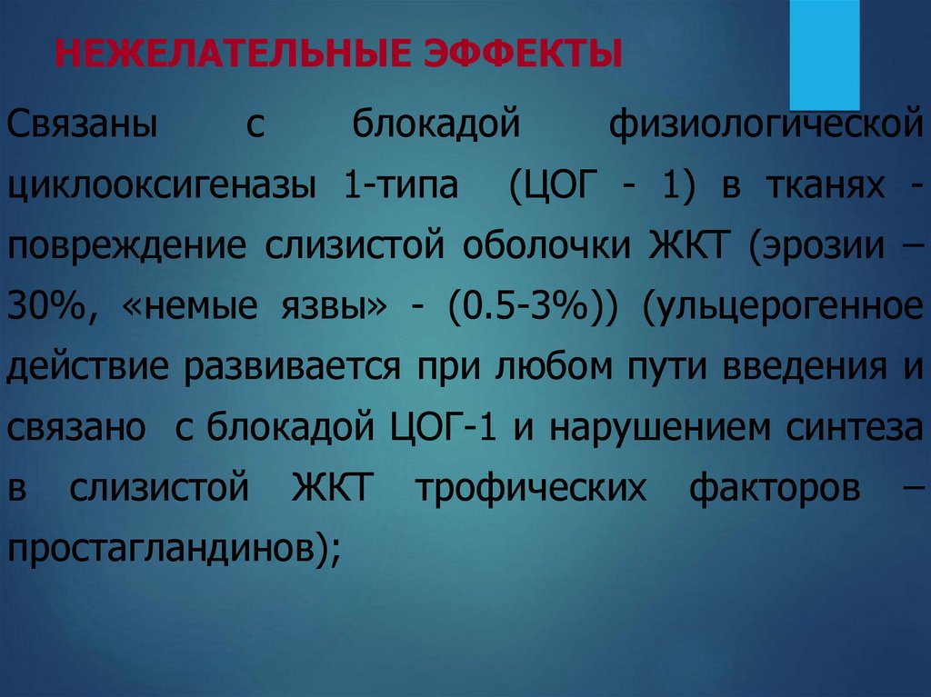 связано с блокадой ЦОГ-1 и нарушением синтеза