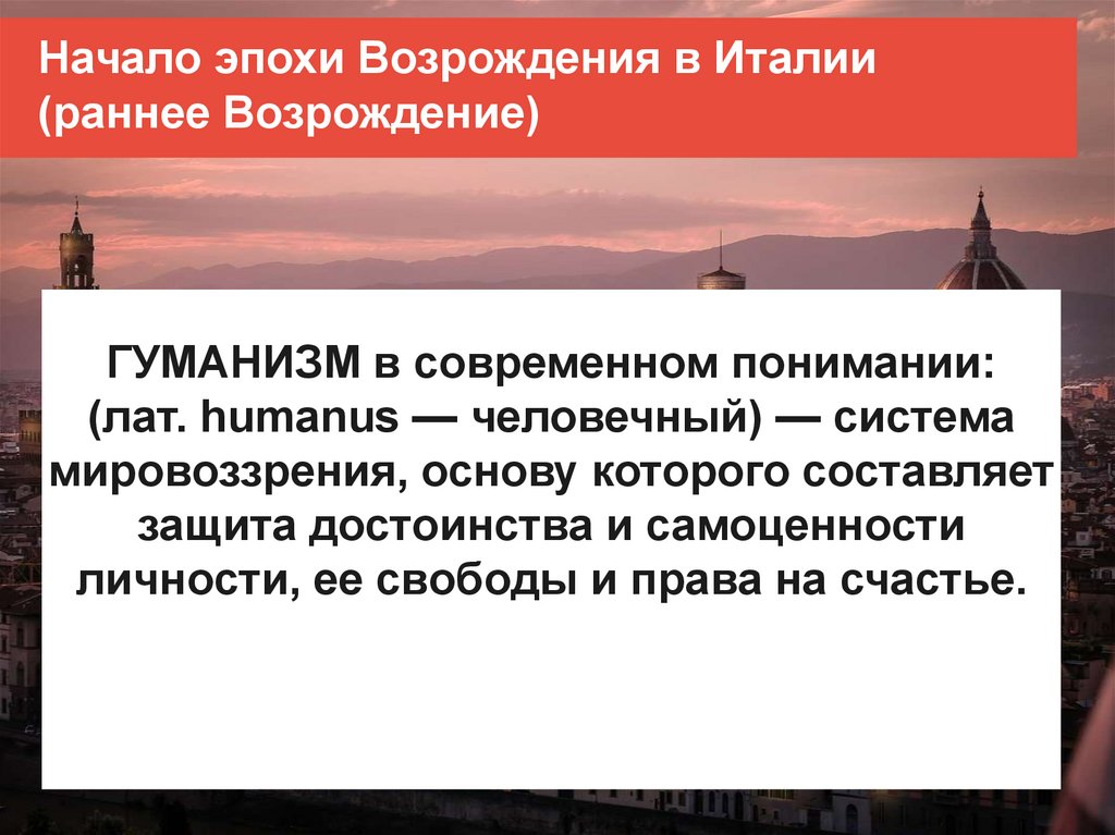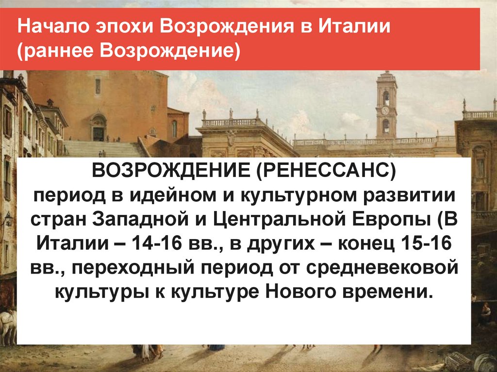 Начало эпохи Возрождения в Италии(раннее Возрождение)