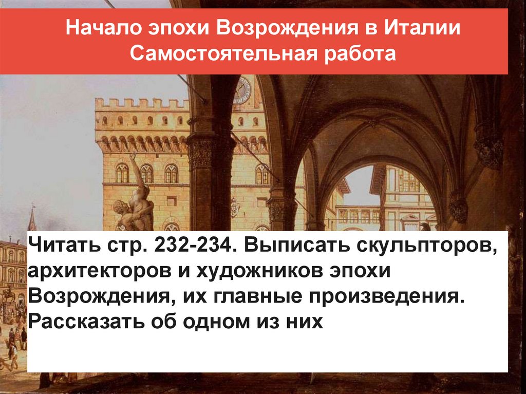 Начало эпохи Возрождения в ИталииСамостоятельная работа