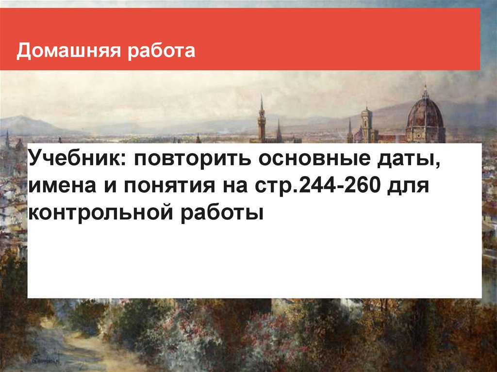 Домашняя работаУчебник: повторить основные даты,
