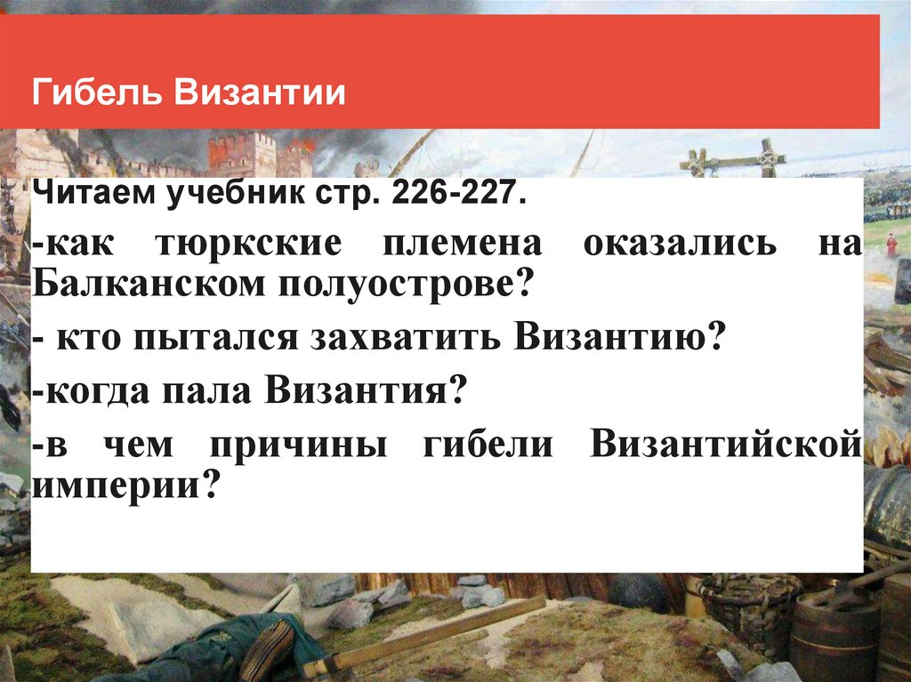 Гибель ВизантииЧитаем учебник стр. 226-227.