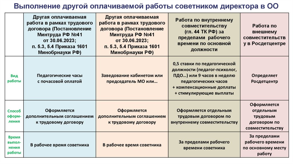 Выполнение другой оплачиваемой работы советником директора в ООДругая оплачиваемая