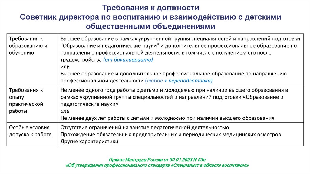 Дополнительная информацияДля трудоустройства Советников директора по воспитанию и взаимодействию с