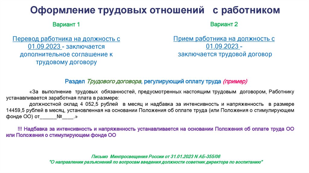 Перевод работника на должность с