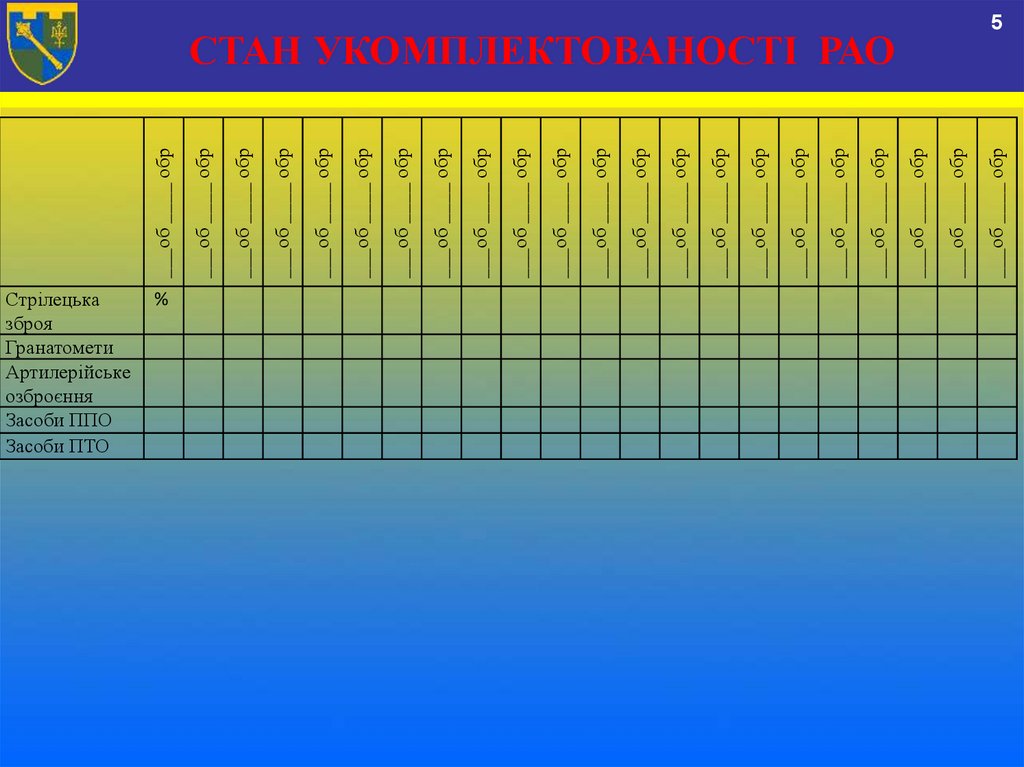 СТАН УКОМПЛЕКТОВАНОСТІ МАЙНОМ РЕЧОВОЇ СЛУЖБИ та5