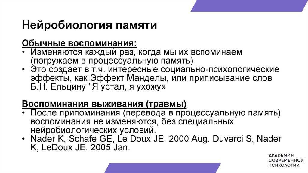 • Nader K, Schafe GE, Le Doux JE. 2000 Aug. Duvarci S, Nader