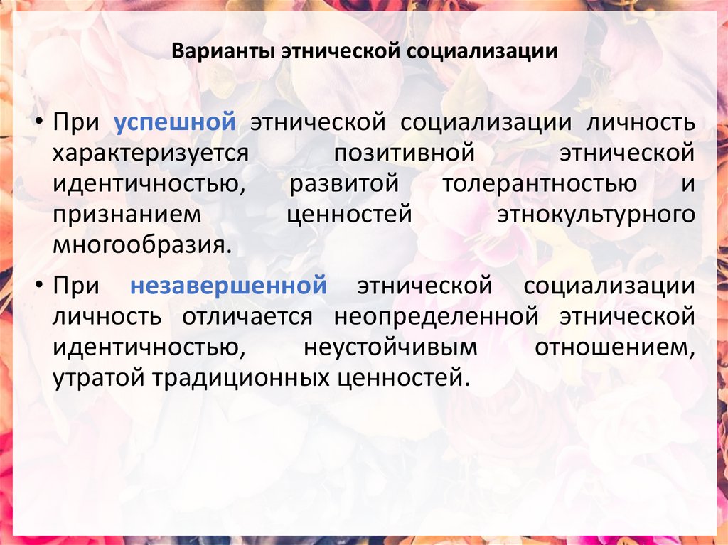 Этническая социализация личностиЭто вхождение в культуру своего народа,