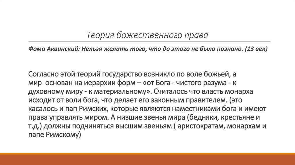 Теория божественного праваФома Аквинский: Нельзя желать того, что до этого не было познано. (13 век)