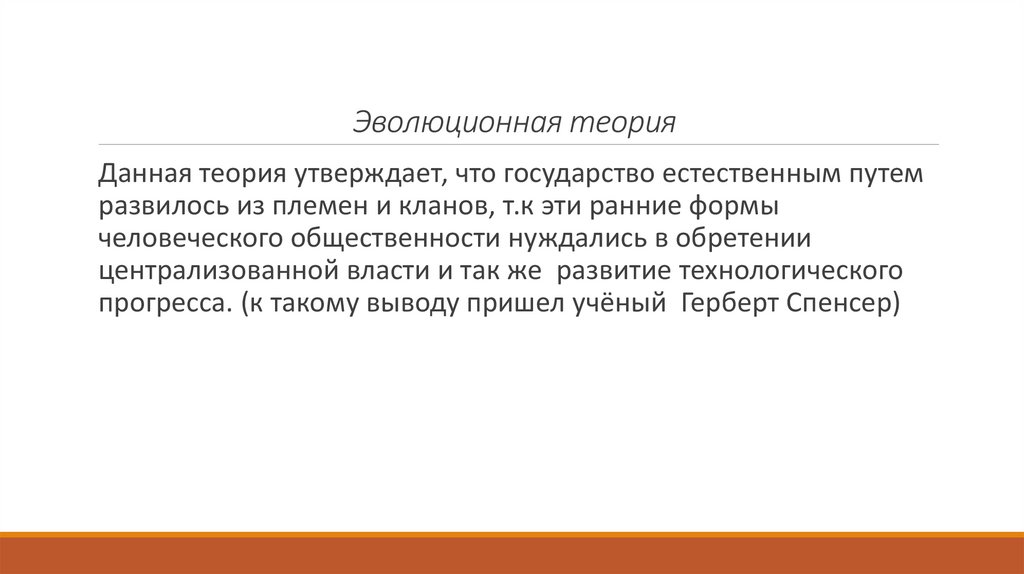 Эволюционная теорияДанная теория утверждает, что государство естественным путем