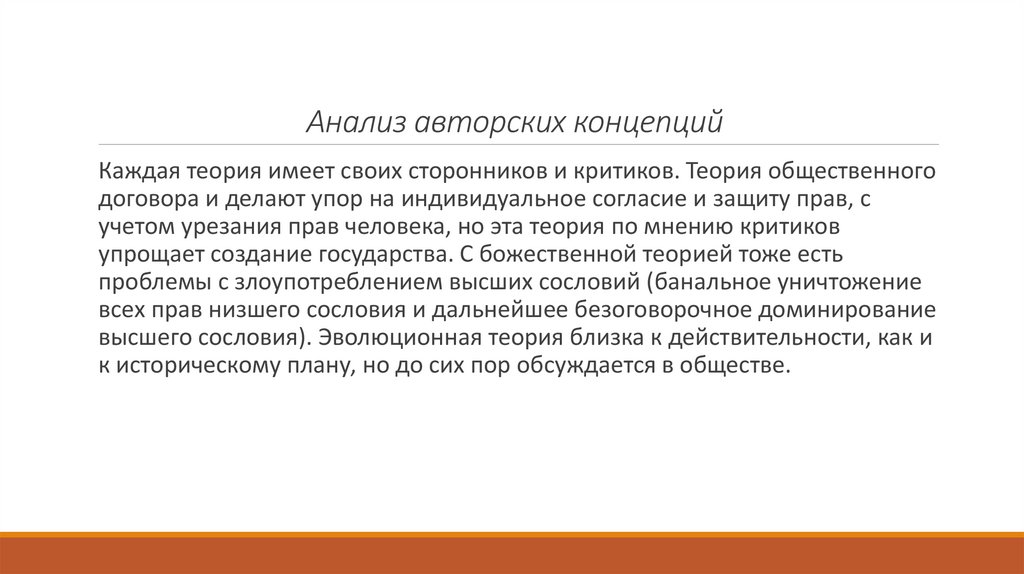 Анализ авторских концепцийКаждая теория имеет своих сторонников и критиков. Теория общественного