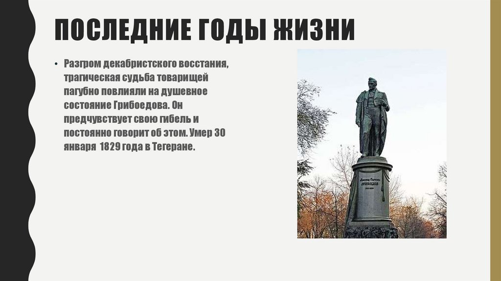 ПОСЛЕДНИЕ ГОДЫ ЖИЗНИ• Разгром декабристского восстания,