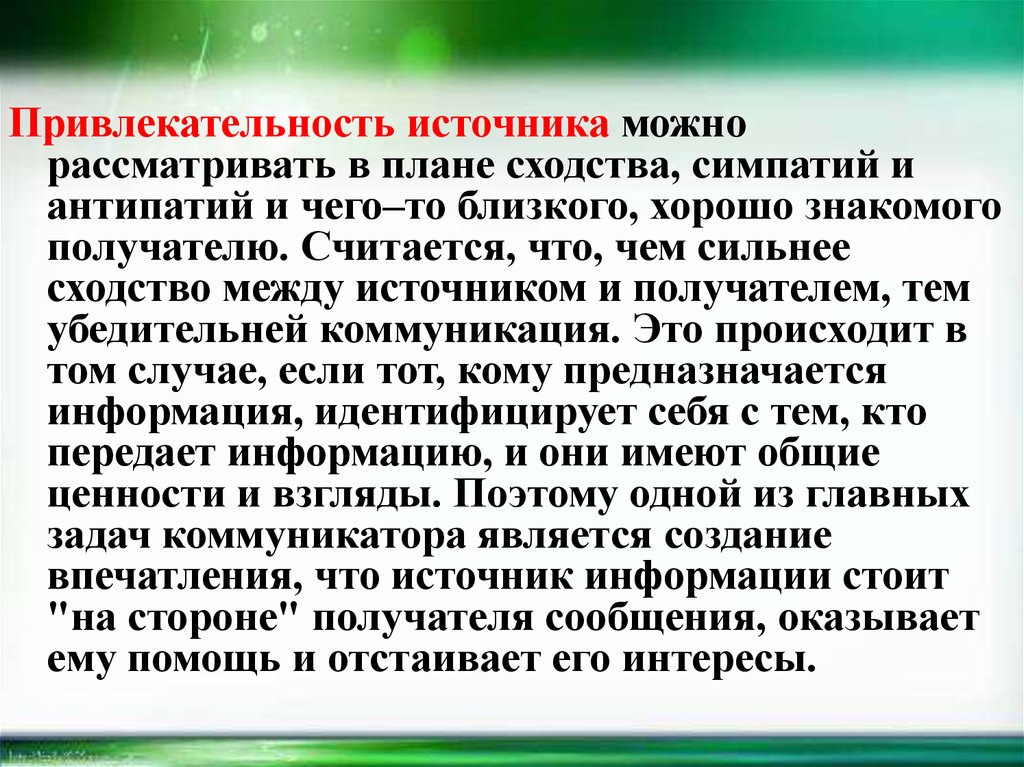 Привлекательность источника можнорассматривать в плане сходства, симпатий и