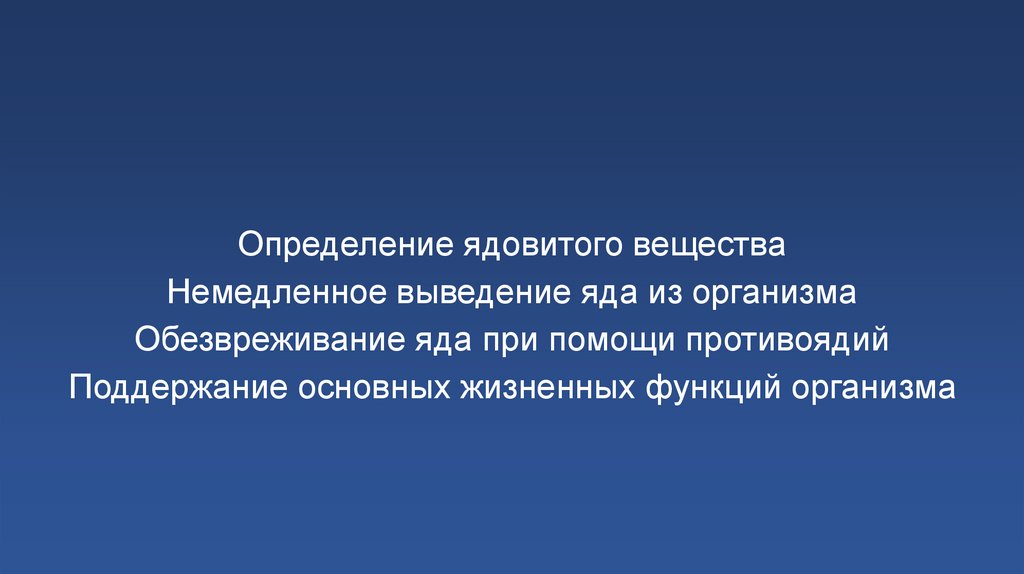 Определение ядовитого веществаНемедленное выведение яда из организма