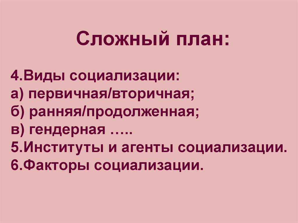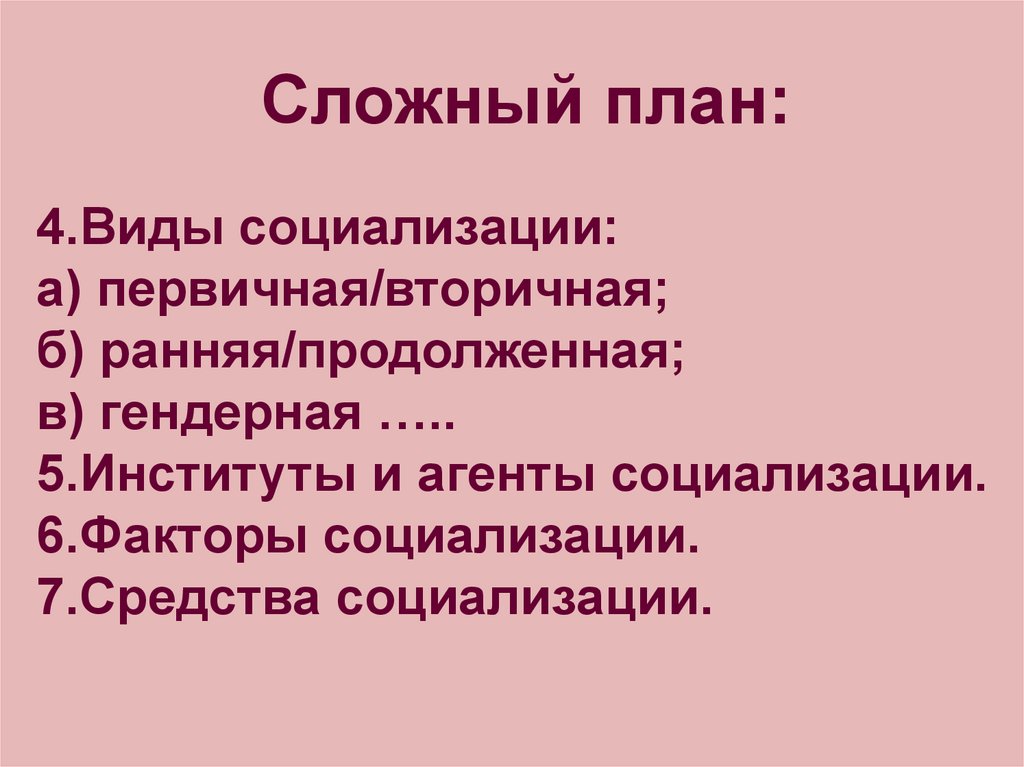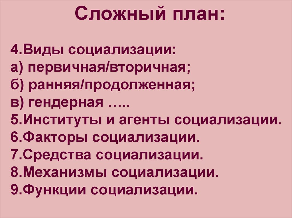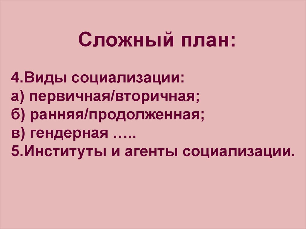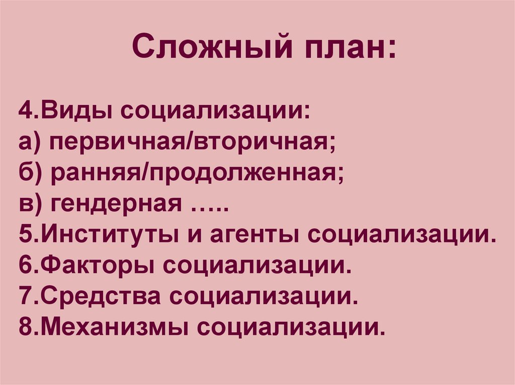Сложный план:4.Виды социализации: