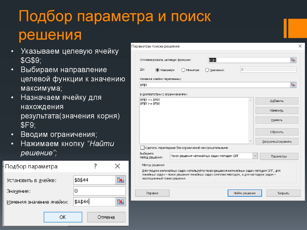 Подбор параметра и поискрешения