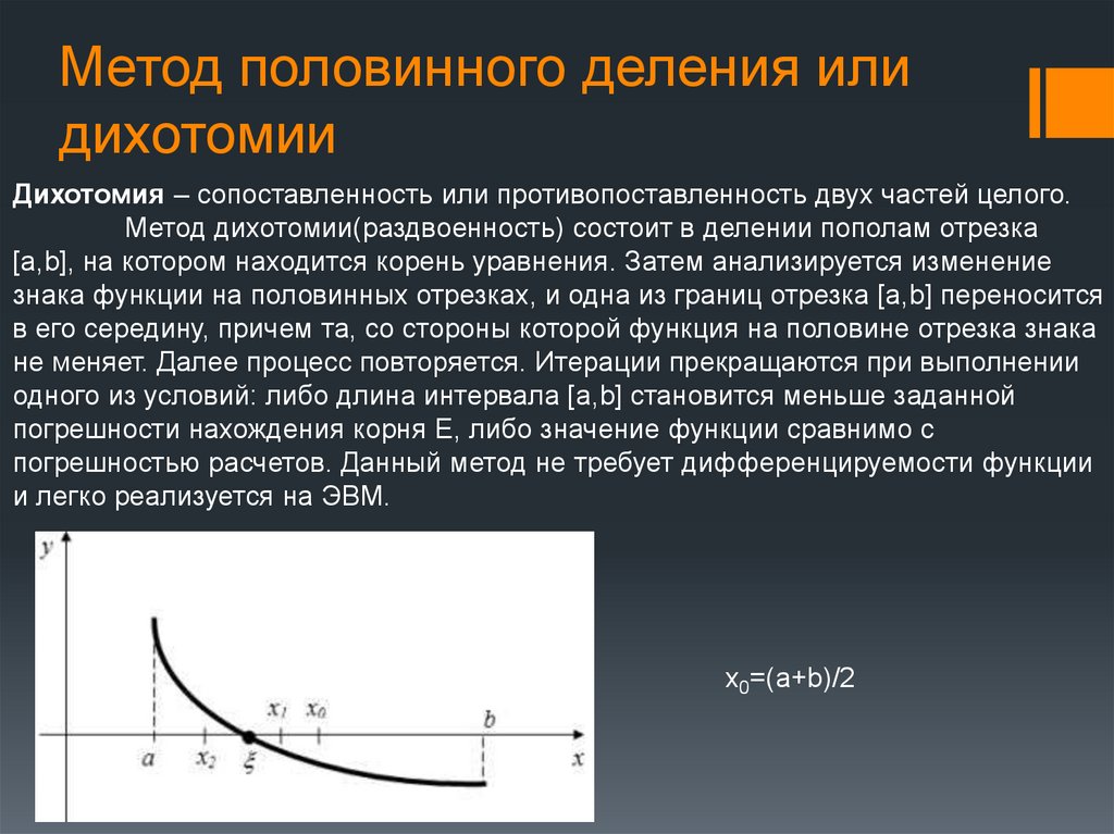 Метод половинного деления илидихотомии