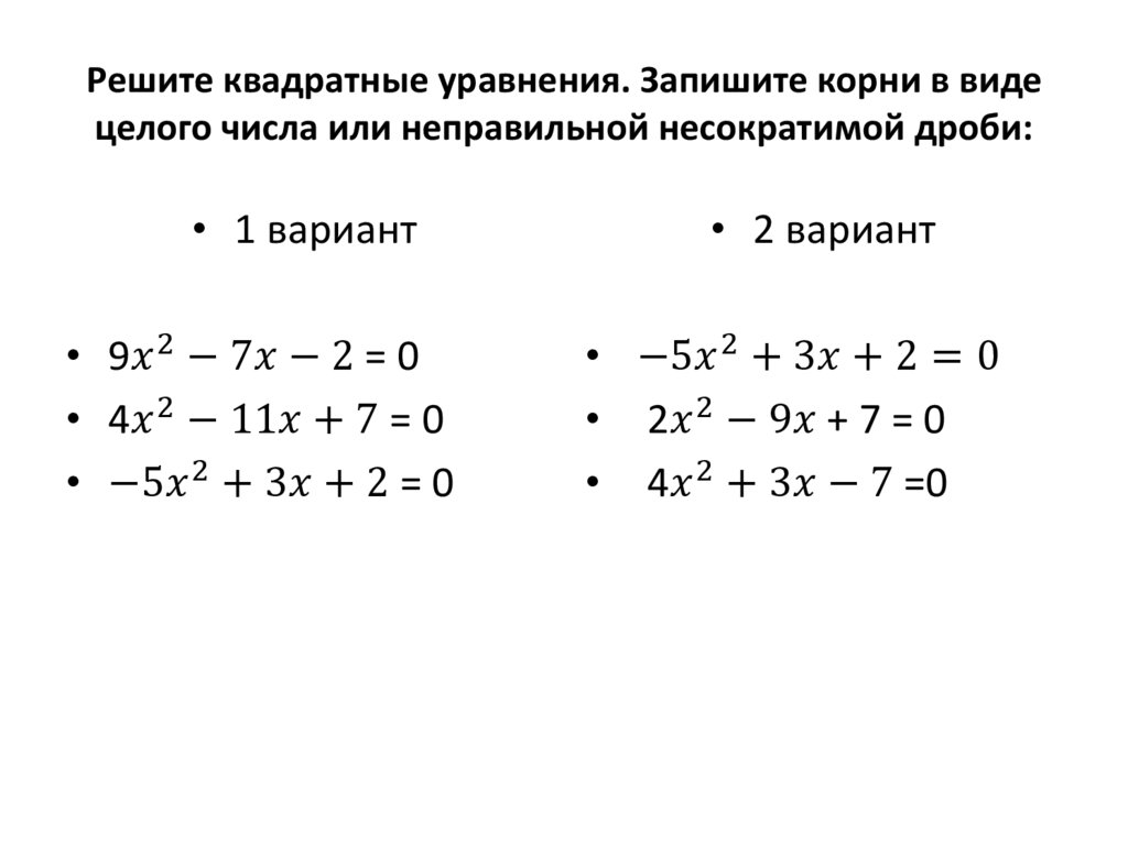 Квадратное уравнение и его корни. Является ли уравнение квадратным?