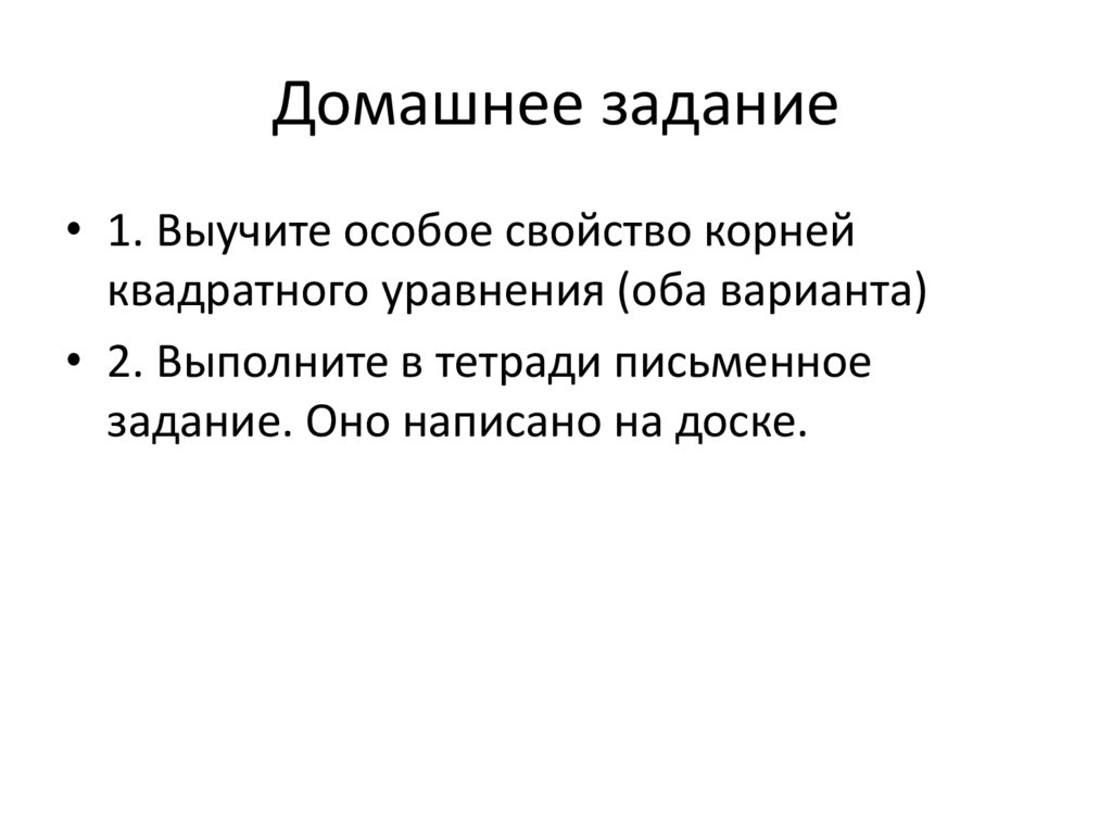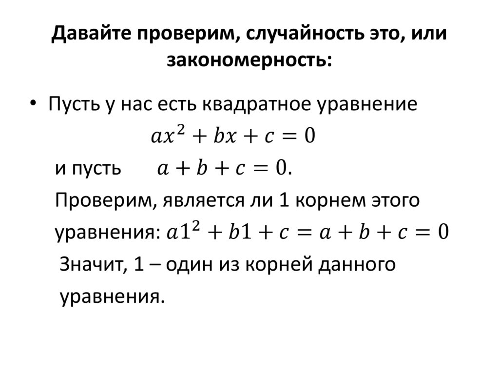 Особое свойство корней квадратного уравнения