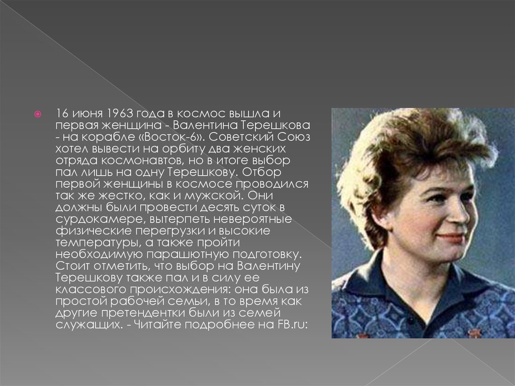16 июня 1963 года в космос вышла ипервая женщина - Валентина Терешкова