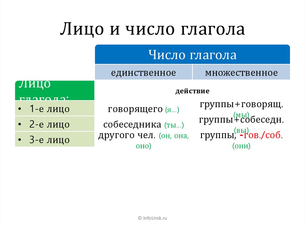 Лицо и число глагола© InfoUrok.ru