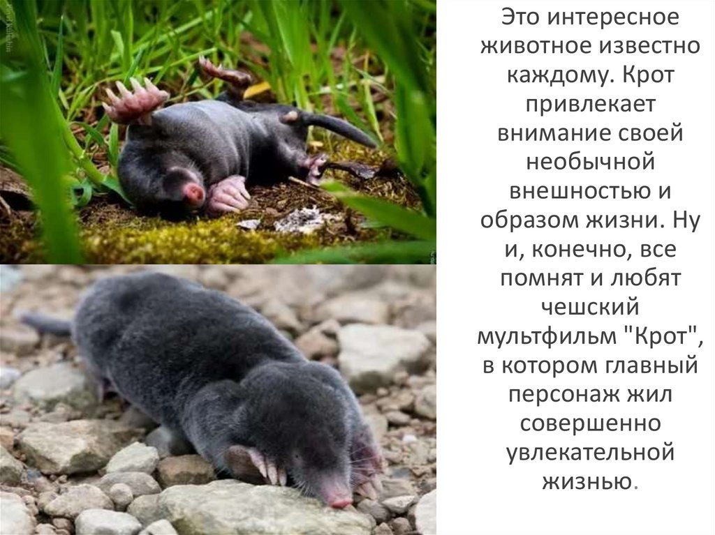 Многие черты строения крота - результатприспособления к рытью почвы. Его шерстка от серочерного до черного цвета густая и короткая, а волоски