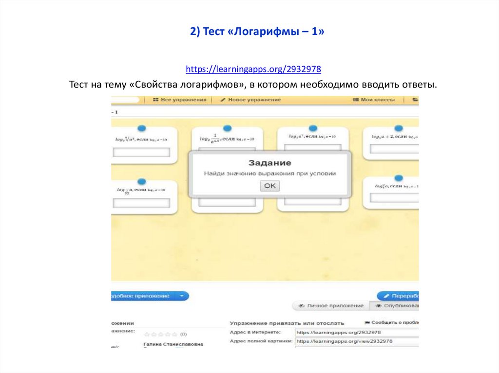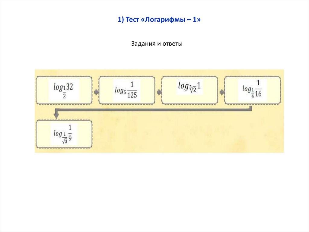 2) Тест «Логарифмы – 1»https://learningapps.org/2932978