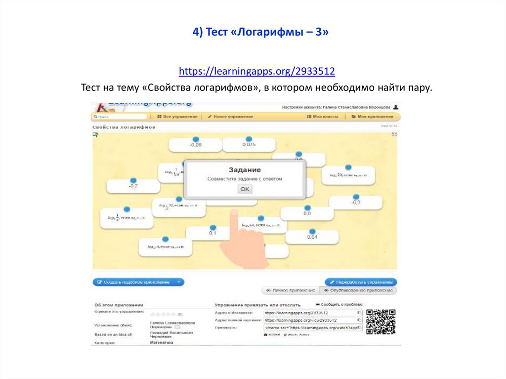 4) Тест «Логарифмы – 3»https://learningapps.org/2933512