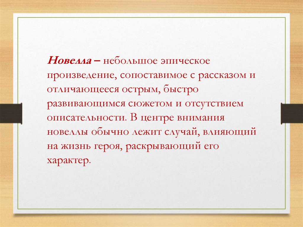 Новелла – небольшое эпическоепроизведение, сопоставимое с рассказом и