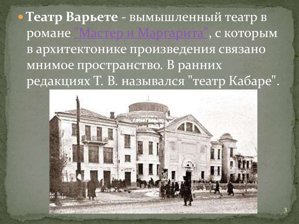 Театр Варьете - вымышленный театр вромане "Мастер и Маргарита", с которым
